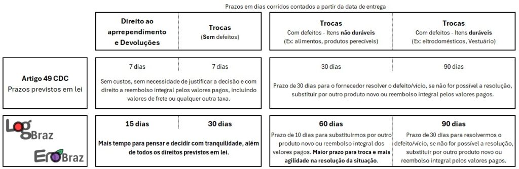 Confira abaixo nosso compromisso com relação a polítíca de trocas e devoluções e também saiba mais sobre o que a lei garante para o consumidor: